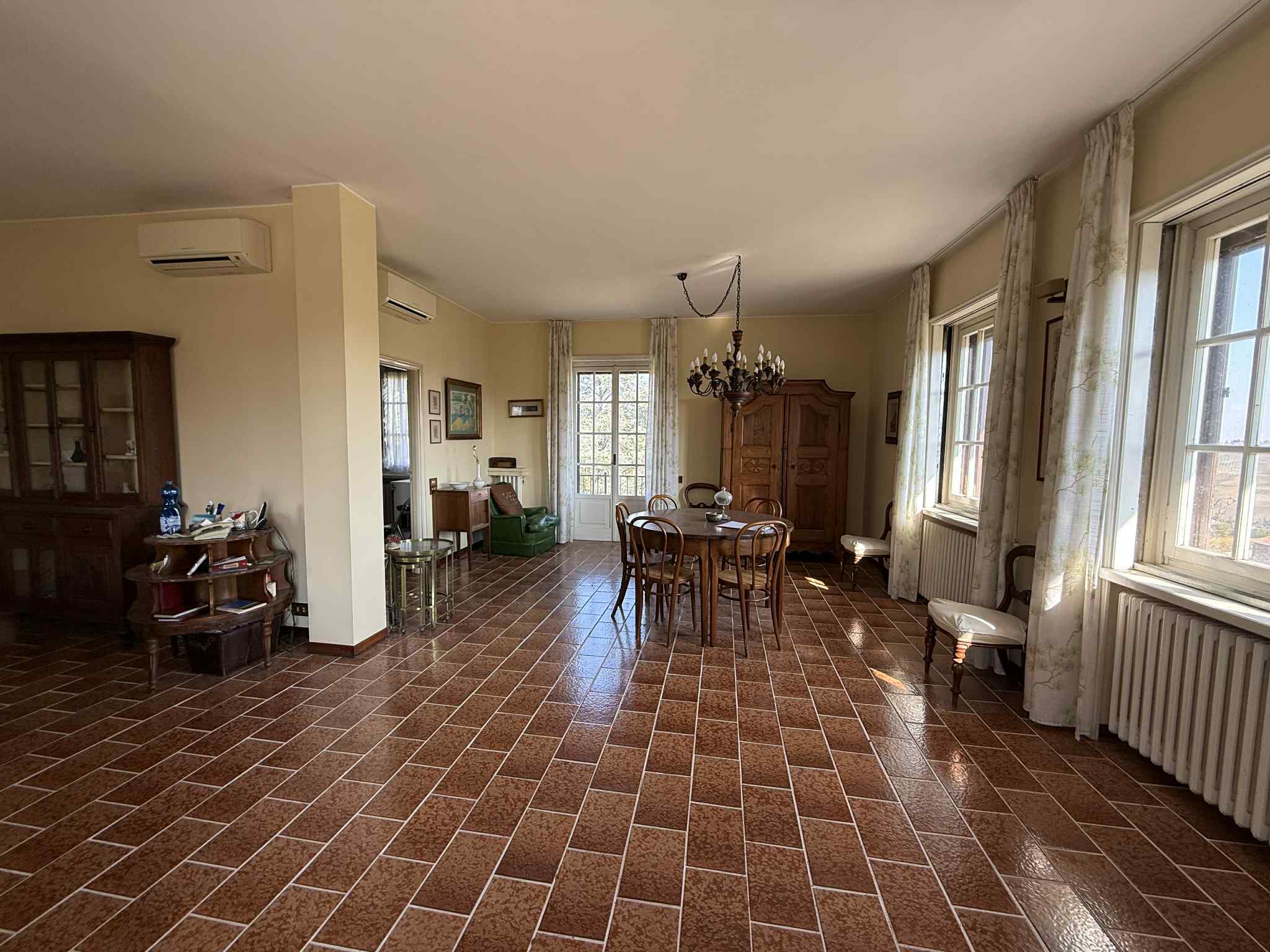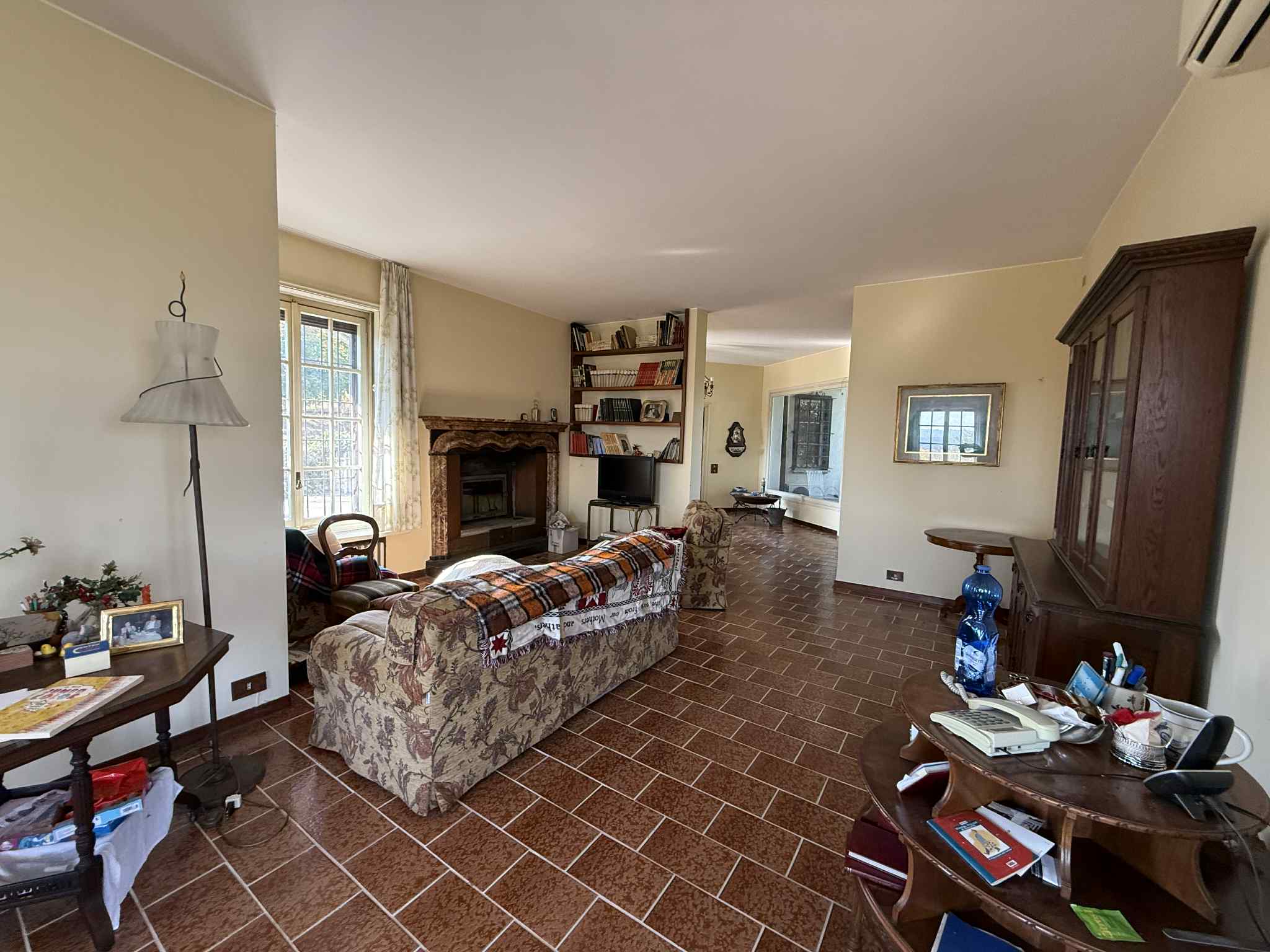 . Il cuore pulsante della casa è l’ampissima zona living, uno spazio straordinariamente luminoso, impreziosito da un camino scenografico che cattura lo sguardo e scalda l’atmosfera. Quattro grandi finestre e due porte finestre inondano l’ambiente di luce naturale e si aprono su ampie terrazze panoramiche, veri salotti all’aperto da cui godere paesaggi silenziosi e suggestivi in ogni stagione. La cucina abitabile, ampia e funzionale, è perfetta per la vita quotidiana e le occasioni conviviali. La zona notte ospita quattro camere da letto, ognuna con affaccio sul verde, e tre bagni.