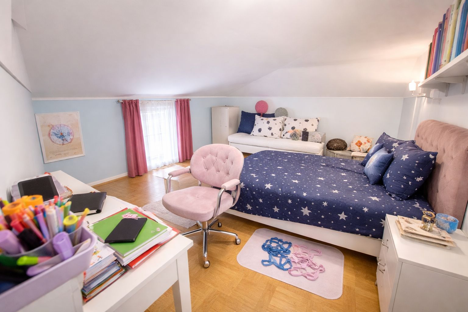 Al piano superiore troviamo una spaziosa mansarda con due locali e bagno, uno spazio versatile perfetto come zona ospiti, studio o area relax.